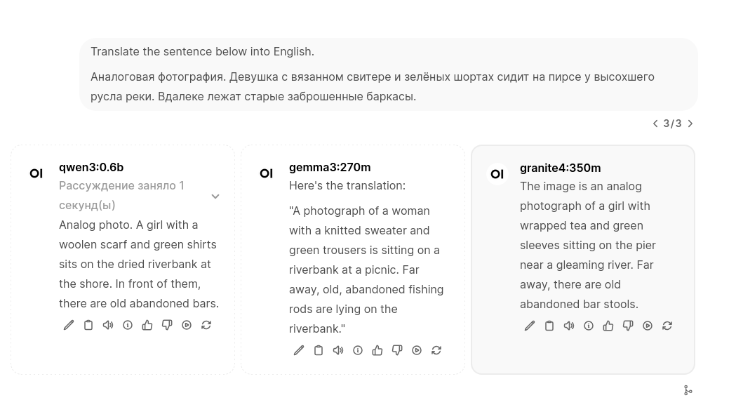 >>1438297 >ллм ноду ну пусть 100мб В 100 мб тебе, конечно, никто не переведёт, А вот в 500мб можно попробовать уложиться. Другое дело, что промты мало переводить. Их надо переписывать, расширять, наполнять вариативностью. И тут чем модель умнее, тем лучше. Тут даже между 8b и 20b разница заметная.