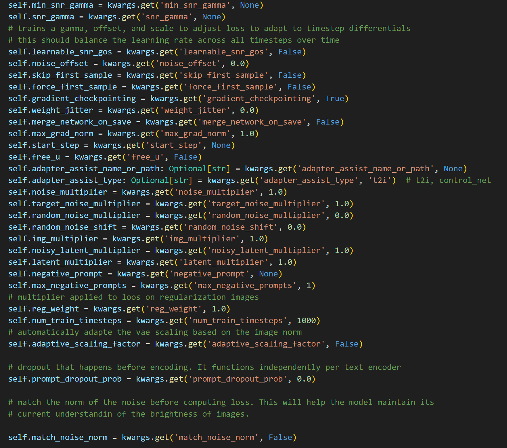 >>1438436 > Что там еще не вынесено в интерфейс? Буквально всё. Там есть файл config_modules.py с параметрами конфига на 1000 строк, надо в нём смотреть. Потом идти в файлы типа optimizer.py или losses.py и смотреть что там доступно. Зато можно просто впердолить elif и своё добавить. С документацией похоже никто не заморачивался - либо ты тренишь в базе в интерфейсе, либо учишься читать простой код питона.