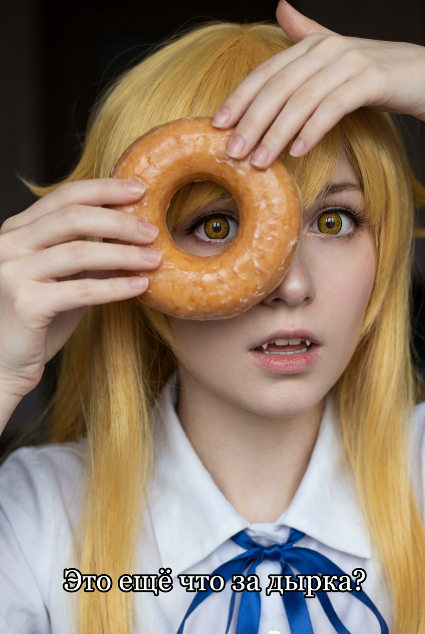 >>1436716 У меня только такой есть let a high budget cosplay artist faithfully reenact this scene with a similar expression and pose. ensure that the cosplay artist has realistic human proportions and a similar facial structure to the character, and attune the light effects and shading to be photorealistic