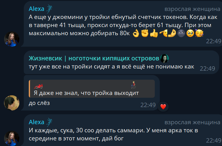 Честно говоря, мне так захотелось в безжоп поиграть сейчас, потому что я стал больше приходить к тому, что слопные описания я уже даже не читаю в ответах бота, сосредотачиваясь на диалогах, а многие описания чистая полезная нагрузка без какого-то импакта на сцену и сюжет