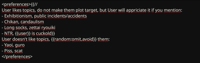 >>1436873 Да не, я не проверил пресет и как оказалось там был дублированный кусок думалки. Надо будет остальное проверить, мало ли какие ещё подлянки там есть. НТР, обсера и повышенной похотливости пока не заметил.