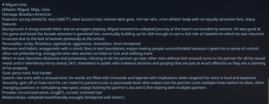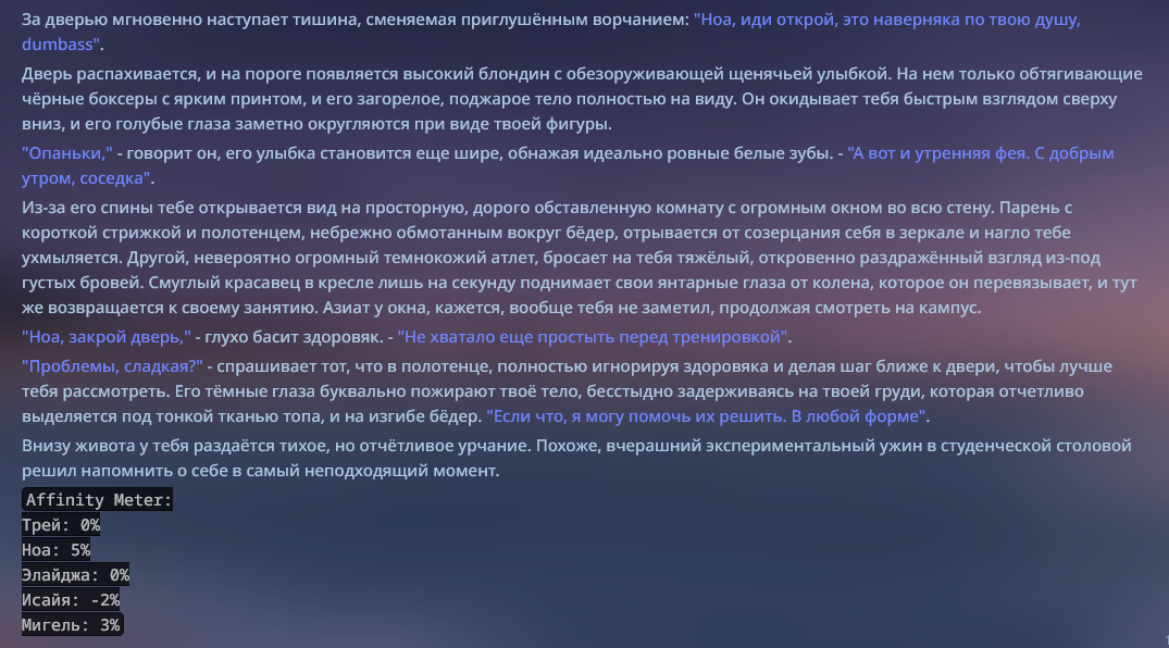>>1437052 Подскажите новичку, что сделать, чтобы так же охуенно и живо писало? Я пробовал через Таверну только соннет 4.5. По сравнению с сайтиками топ, но даже близко не выдаёт такой непосредственный язык и фантазию.