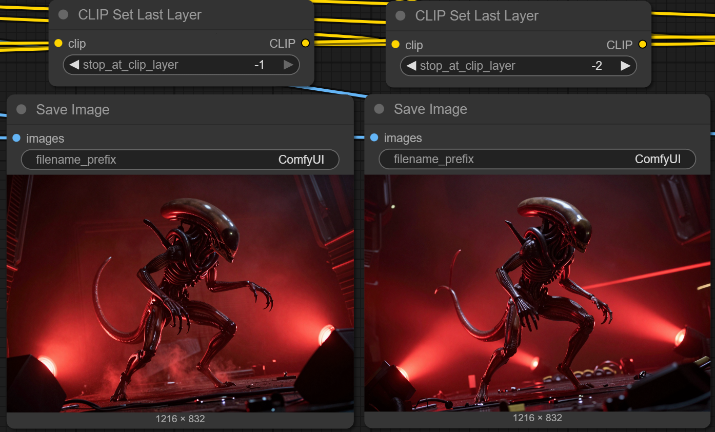 Там, получается, если я правильно понимаю, резко обрубается генерация («model will now stop processing at the specified layer») и выводится то, что получилось на момент останова.