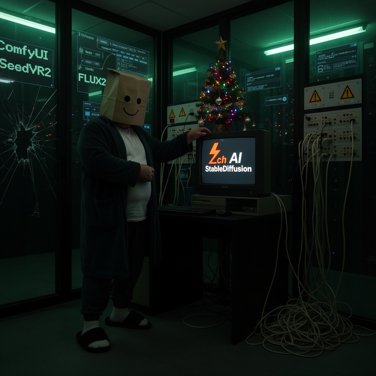 Сработало. На самом деле, круто для Z-Image. Конечно, не то, да и с «70's vintage computer terminal» у Z-Image беда (что неожиданно). Но я бился, чтобы заставить Z-Image выдавать что-то подобное.