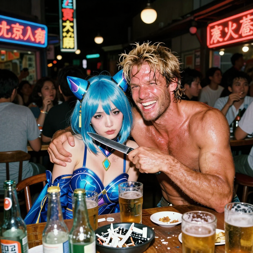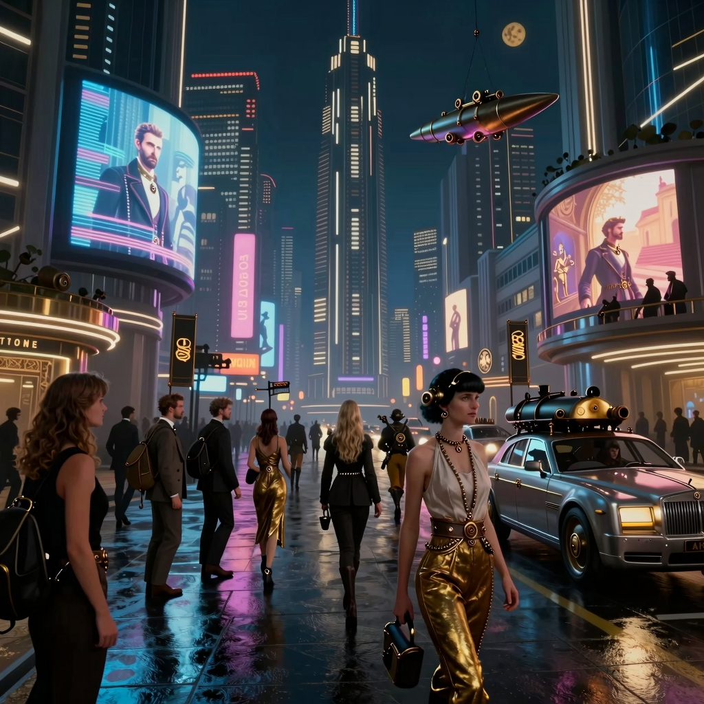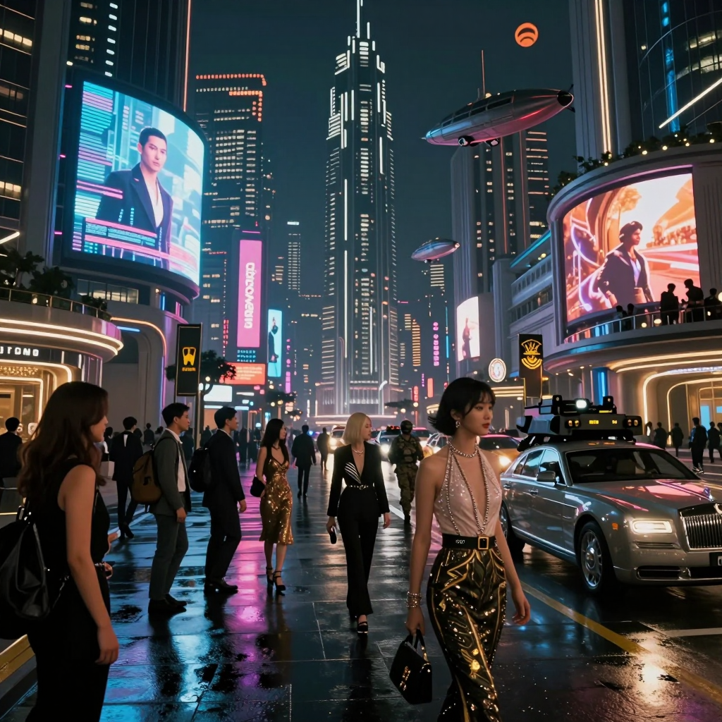 >>1443322 Да, беру промпты у ллмки > A highly detailed cyberpunk future cityscape at night with a crowd of people living in luxury under a strict authoritarian regime. Neon lights reflecting off wet streets, advanced technology with holographic advertisements, people wearing high-tech fashion and expensive accessories. Authoritarian symbols on buildings, military presence with armored vehicles patrolling. Luxury cars and airships hovering above, opulent skyscrapers with exclusive clubs and casinos. Sharp contrast between wealth and control, cinematic lighting, 8k, photorealistic style Сначала дура проигнорировала часть промпта, затем подменила азиатов на людей, после чего действительно нарисовала по теме. А рисованные изображения нейронка не любит > happy old man