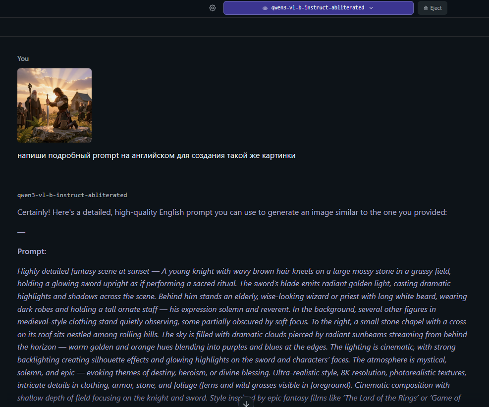 >>1444924 Со всякими "улучшенными" версиями Qwen3-4B поаккуратней бдь: не знаю в чём дело, но они точно меняют генерацию, причём часто совсем не в лучшую сторону, добавляя хаотичных деталей или каких-то нелепых абоминаций, вроде "склеивания" двух концептов в один. На всякой фентезийной фигне может (или если промпт достаточно неспецифичный) и не так заметно, но если хочешь получить что-то очень конкретно? Прям бросается в глаза.