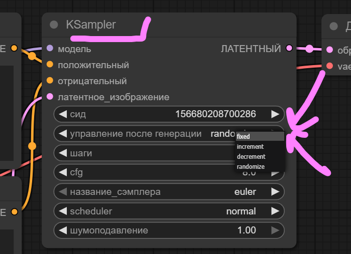 >>1445605>>1445602 > у ksampler нет такого > две строчки посередине increment - повышают значение сид на 1 decrement - повышают значение на -1 по идее между рандомайзом и инк/декр не должно быть сильной разницы в результате, на деле как придётся