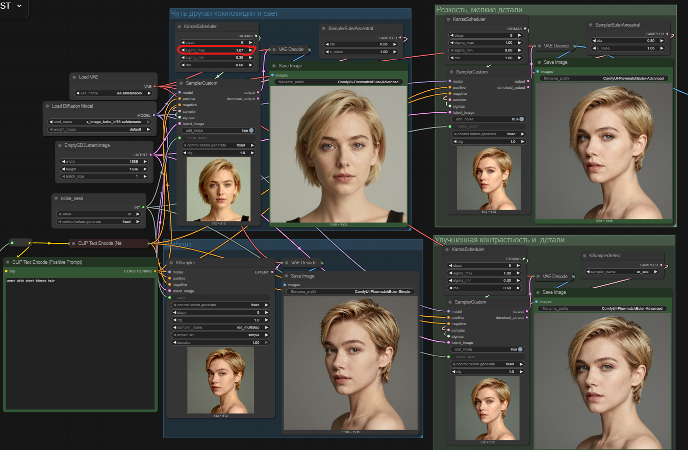 >>1444993 >в комбинации с этими настройками Карася дают наиболее хорошие результаты на Z-image Спасибо анончик, что напомнил как я крутил неделю эти настройки еще на сдхл. Вот держи воркфлоу с карасём с моими тогдашними находками, чутка подправил. Получилось шикартно, если внимательно сравнишь, то увидишь. Параметр что отметил красным на скрине сильно меняет картинку. Регулировать по единичке.