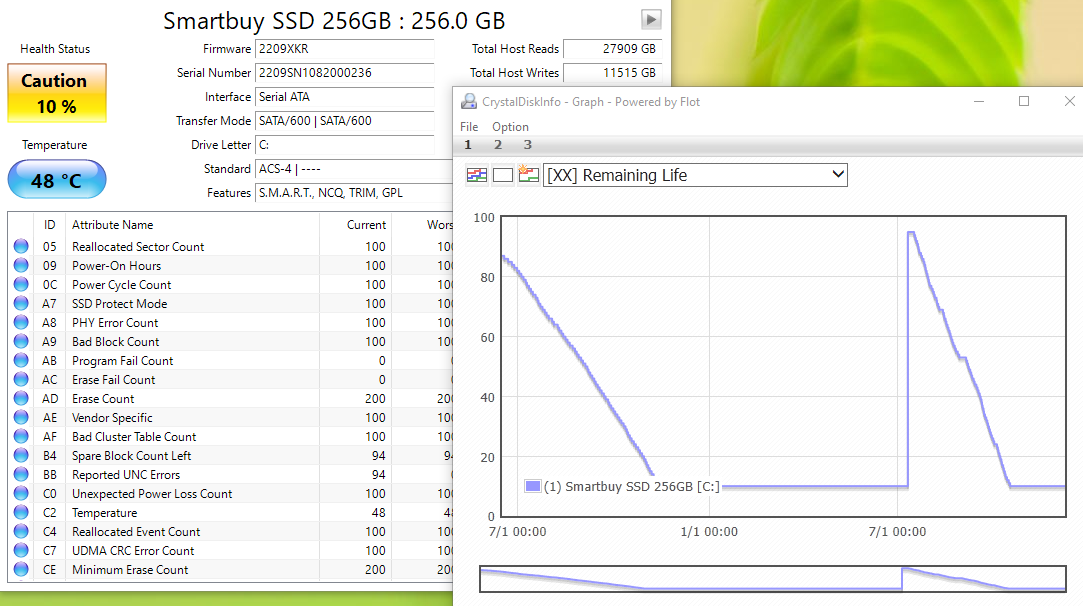 >>1446871 Чего ты там ссышь. Нормальный ССД должен минимум 500-700 ТБ жить, тебе с 7 ещё далеко. У меня 100 гигов подкачки на ССД и мне вообще похуй, спустя 2 года пишет 5% жизни ушло.