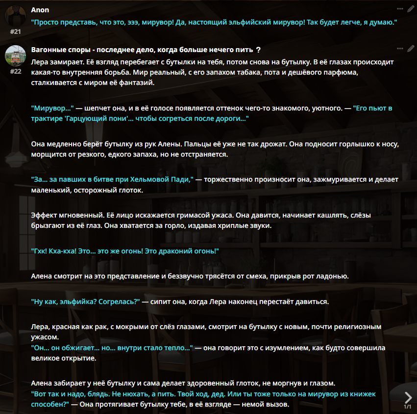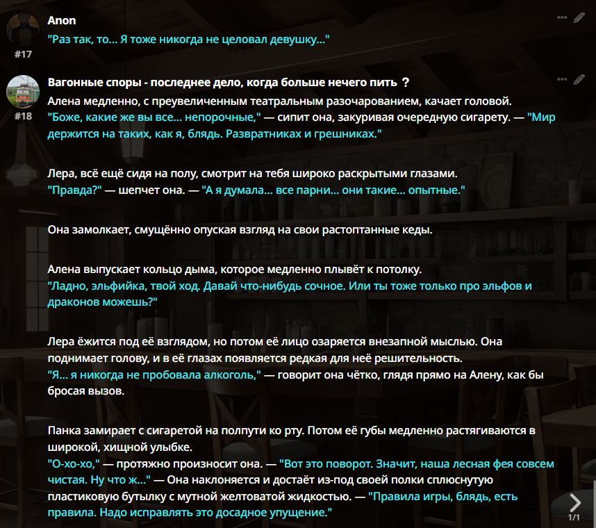 >>1444670 Да, и за это обожаю её. Можно двигать реально крутые сюжеты, а не вставил-высунул-вставил кончил. Особенно когда бот подьебыаает за то, что сделал 100-200 соо назад