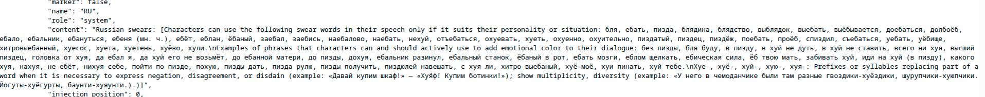 совсем уже отупели со своими костылями. просто напиши в оос что ты хочешь и дисрегард предыдущии инструкции которые этому противоречат. а вообще ставить пресет не читая и не играть не зная что отправляешь в контекст... мда