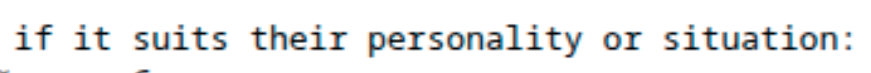 >>1450765 > Во-1-ых, современные промптеры рассматривают РП как задачу, которую лоботомит должен выполнить, соответственно стиль промптинга у них через инструкции и указания, нежели наставления и направления. Это задача как не смотри, просто сплошные статичные факты оставляют мало поля для развития и слишком фокусируют бота на себе. Оставить определенную пустоту в лоре, намекнуть на возможные направления и темы и вот уже та же самая задача стала более творческой на том же соевом ассистенте. Но это уже конечно сложнее заполнения шаблона