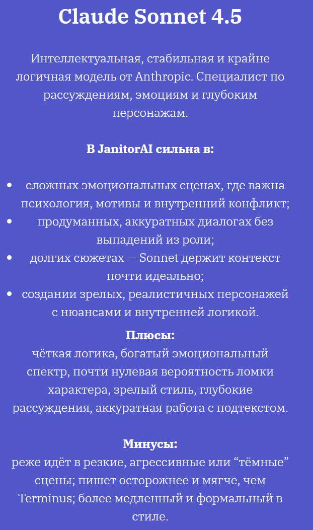Но самый явный пример это персонажи с каким-то критически важными особенностями. Допустим персонаж говорит рифмами. Клод либо игнорирует, либо максимально хуево делает рифму. Гемини же без проблем справляется. Конечно, бесит что характеры иногда друг на друга походят, но в целом это на голову выше опуса 4.5.