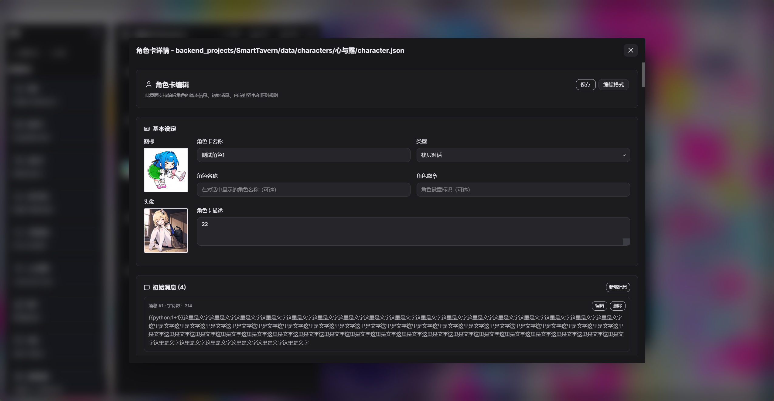 The reason I wanted to make this thing is, on the one hand, that I needed it when building bots for the Brain Arena (类脑竞技场). If you want to support complex content like presets and world books, wrapping a whole Tavern (TavernAI) instance behind the bot backend is too heavy, and it’s not good for plugin development either. On the other hand, Tavern’s own performance optimization is worrying—there’s a huge pile of messy code, and if you want to write plugins for Tavern, the barrier to entry is extremely high. So this is both to clean up that code mountain and to make plugin development more convenient.