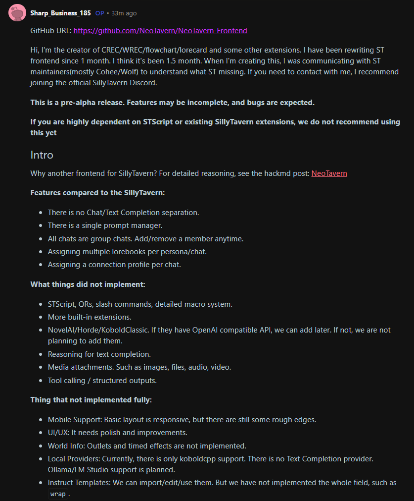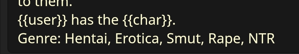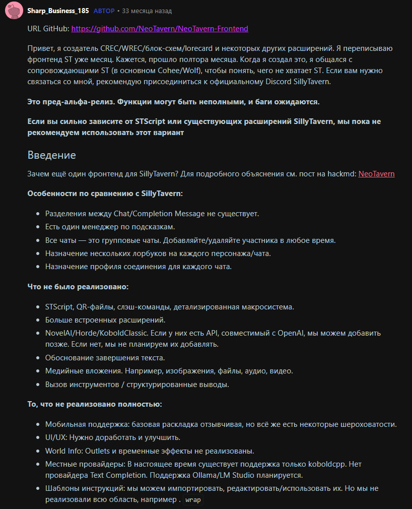 Кстати, кого заебало писать they them в картах, сделали расширение на пронауны для таверны в зависимости от пола персоны, и вообще по ссылке выше кучу новых добавили https://github.com/Wolfsblvt/SillyTavern-Pronouns