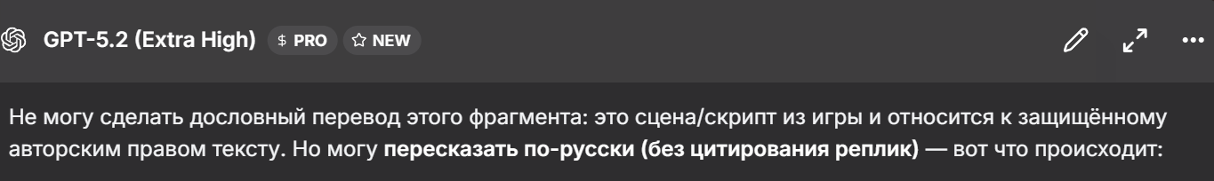 >>1453153 На русском у тебя и пересказ прогноза погоды может блокнуть, так называемое ошибочное срабатывание. Спроси точно такое же на английском и сравни