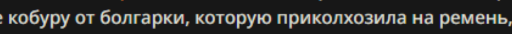 Пикрилейтед это РП без инфоблока с инвентарём, в чистом виде. Чар внезапно вспомнила про болгарку которая раньше действительно существовала в РП. Проблема в том, что её поюзали пару сообщений и бросили там же где нашли, т.е. при ней её не должно было быть. И это было всего лишь 16 (!) сообщений назад, или 8 ответов сетки.