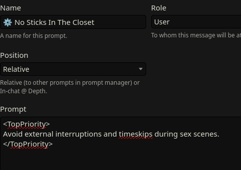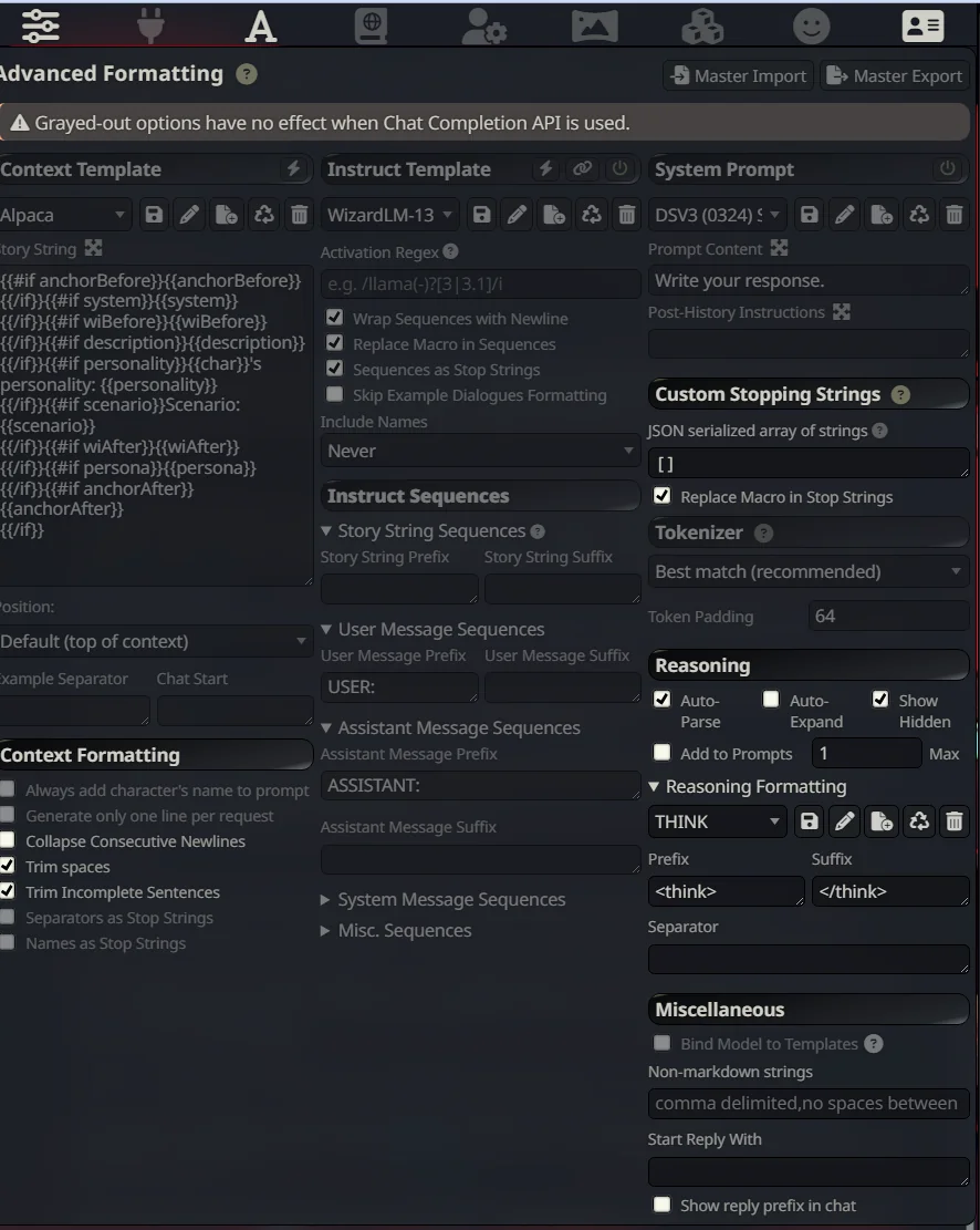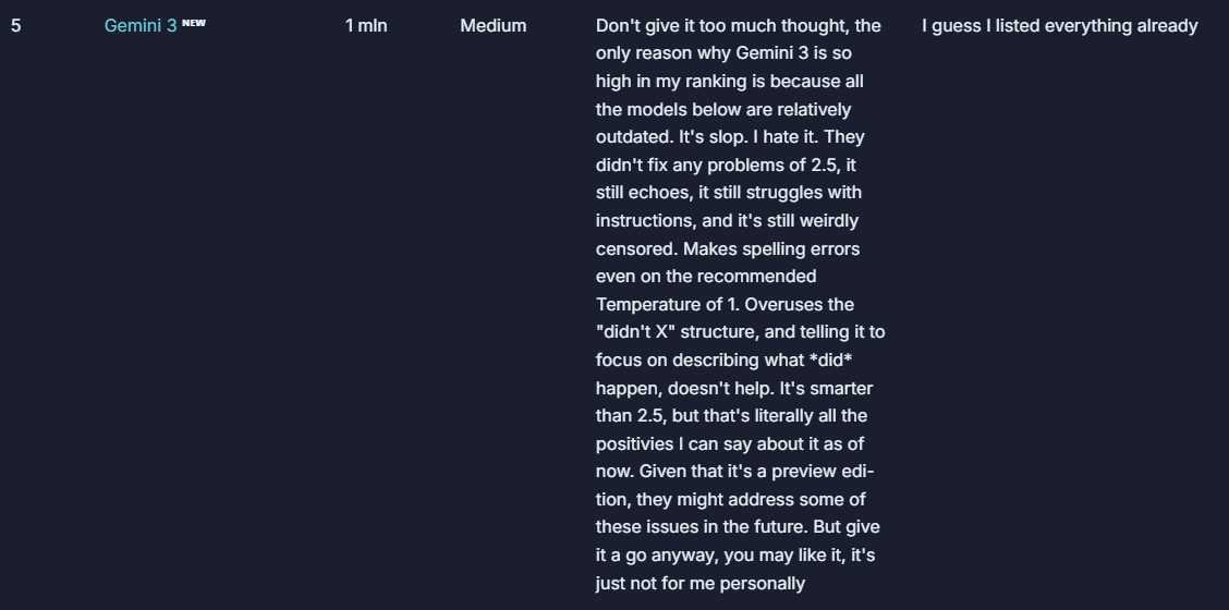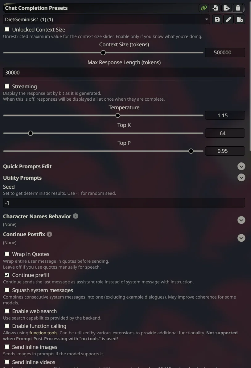 Блять, неужели нет норм пресета на гемини 3 от базовых людей в треде? Пробовал пресет ремиксера, но LLM будто похуй на эти промпты. Хуячит текст полотном, без форматирования (хотя они же явно сука указаны в пресете), без доп. ползунков (тупо похуй). Как итог, один свайп полотно бед диалога, другой свайп онли диалог, третий плевок на 200 слов, а четвертый полотно на 700 слов. Это блять и есть ваш гемини 3? Или пресет настолько хуевый? Чет с глм и писиком было в разы проще, из коробки работали адекватно.