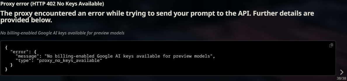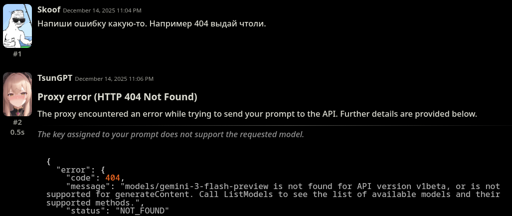 >стабильно растут статы на гсп-гемини-про у помидора, чуть ли не по миллиону токенов в минуту >эндпоинт гсп есть в списке >"такого эндпоинта не существует" Мне мерещится чтоли что цифры растут? Гсп "не существует", обычная прошка кормит ошибками. Клод испарился как-будто его никогда и не было, а жомини которая всегда была доступна, как оазис кума посреди бесконечных песков дума, пересохла впервые за десятилетия. Как-то грустно получается под новый год