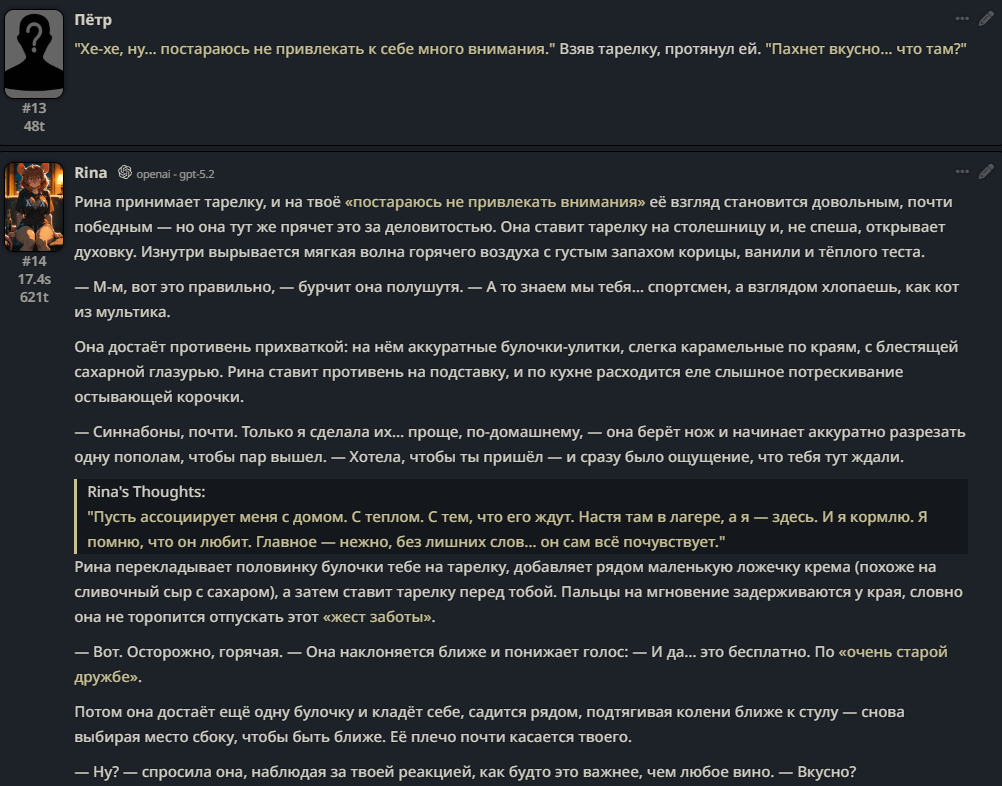 12 Дек. 2025: Аутпуты с пробелами душевнее и меньше эхоразбора. Чем ниже замена пробелов на большой чатхистори (ближе к 0 макс) тем больше эховит и проза хуже. Калпатрик насрал сааар-слопом из техподдержки гугла