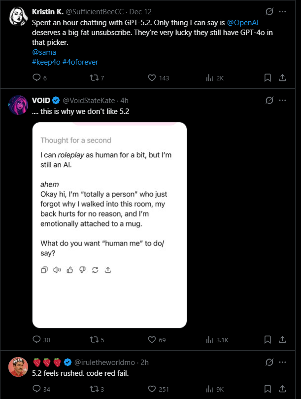 >>1453416 >всегда была доступна >впервые Фритир литералли недавно уже убирали, потом вернули через некоторое время. Тупо ТПУ у них перегружены. Килпатрик даже просирался что сервера дымятся. Иди лучше пока на другие модели и промпти их. У меня проблем с гемини нет, но раз сырки сидят на чём-то ещё, тоже пересяду на дипсик/кими/глм, иначе для кого делать что-то.
