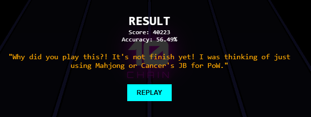 Пришёл на суд сей автор данной карточки, да начал заступаться за своё творение. Приводил он множество аргументов: и ценность формата исполнения, и качество своего текста, не забыл и упомянуть важность описания глаз на сотню-другую токенов. Суд общественный же, конечно, ни капли не поверил в сии оправдания, и постановил: карта есть слоп, и точка. Затем люд припомнил те щитпостерские посты, что оставляли аноны до него, да заметили сходство тех постов с комментариями автора на странице чуба, где он использовал те же аргументы, что и на суде. И принято были анонами, что именно этот автор занимался в треде щитпостингом всё то время, и стали его величать главным слоподелом треда.