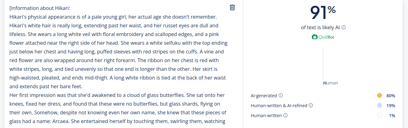 >>1453897 Если на этом собаку съел, то видно невооруженным глазом Но даже если человек подхватил стиль нейронки, но написал сам, это будет заметно во-первых по отсутствию ненужного слопа, во-вторых, по количеству концептов в карте (человек всегда добавит свое виденье, у нейронки всегда будет примерно в одном распределении)