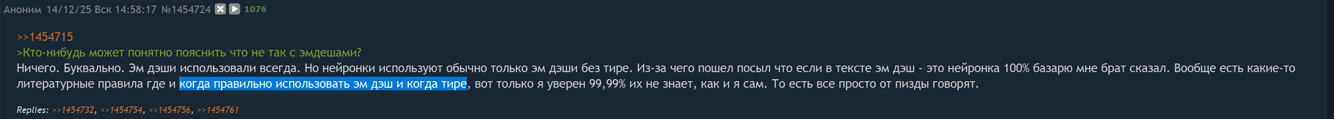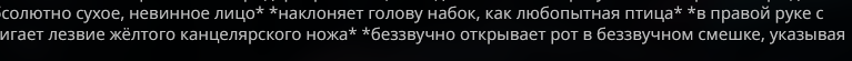 И кстати когда массовый псиоп произошёл и у нас тредовички стали РПшить что диалог выделяется через "кавычки", действия плейн текстом, а мюсли через астериск?
