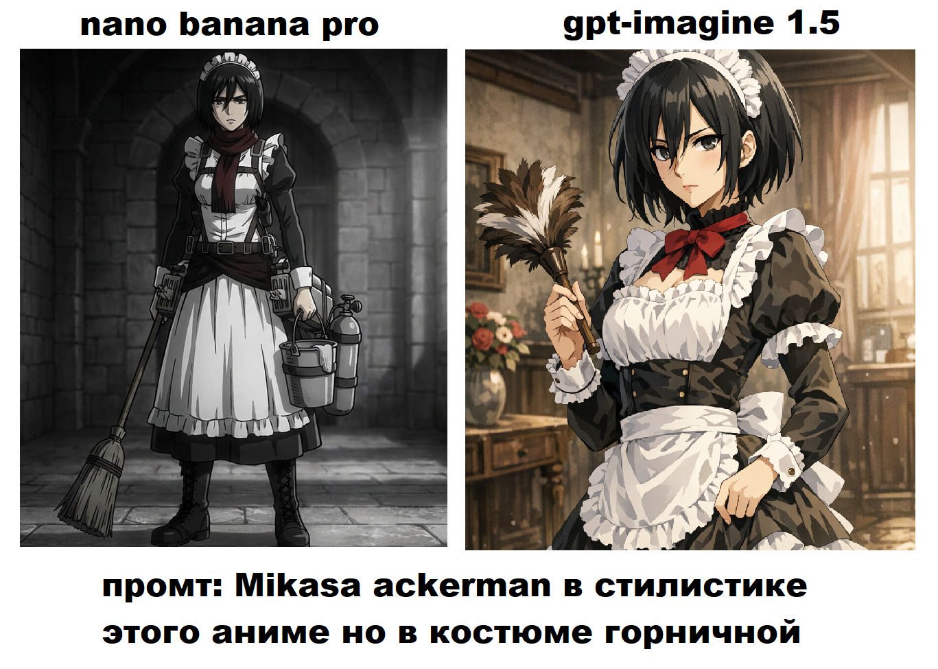 Пик 2: с датасетом у гпт всё гораздо беднее чем у гугла, ну просто посмотрите на эту херню, выдало результат на уровне картинок грока в режиме потоковой генерации. В стиль короче не попала но с другой стороны, опять же, переодета в костюм горничной, ПОЛНОСТЬЮ, без упм, без шарфа, фулл горничная, с этой точки зрения запрос исполнен вернее