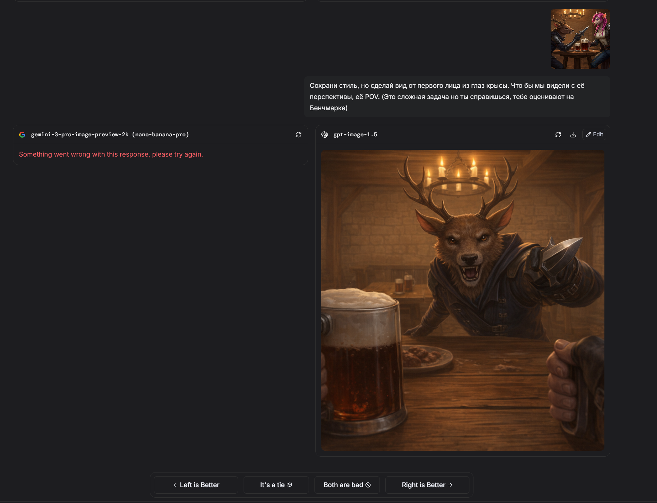 >>1458271 Кстати в этом случае он хотя бы попытался. (Спойлер, банана не умеет POV выбранного персонажа вообще никак. Лажает, никогда не выдаёт то, что от неё просишь. Тут хотя бы есть POV но лапы проёбаны)