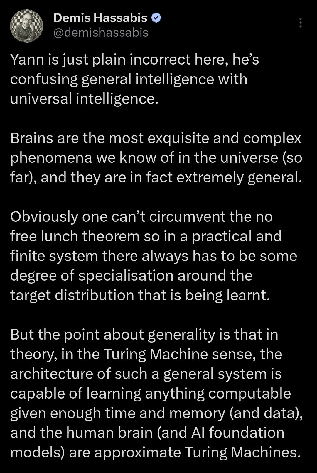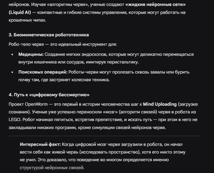 >>1467038 >но ведь мы же ещё не знаем даже и на половину как работает наш мозг. Это на текущий момент. Если бы мы пошли другим путем и не смогли найти вариант создания AGI другим способом, то мы как минимум когда-нибудь смогли бы скопировать наш мозг. >и явно AGI будет на других принципах строиться Поэтому я и говорю что теоретически. Я не говорю что это случится, я говорю что это как минимум реализуемо в нашем мире.