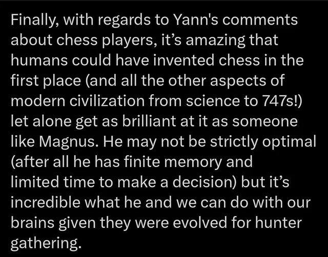 >>1466990 У нас есть доказательство того что AGI возможен, так как наша биологическая нейросеть уже обладает этим уровнем интеллекта и работает в тех же физических условиях. Теоретически мы можем со временем просто скопировать наш мозг. Что касательно ASI, глупо думать что эволюция достигла своего пика и интеллект лучше нашего невозможен. Мы не достигли пика, мы получили тот самый минимум интеллекта, чтобы начать заниматься наукой и разрабатывать новые технологии, ещё есть простор для прироста интеллекта, вопрос лишь в том каков он, каково физическое ограничение на интеллект и скейлится ли он бесконечно.