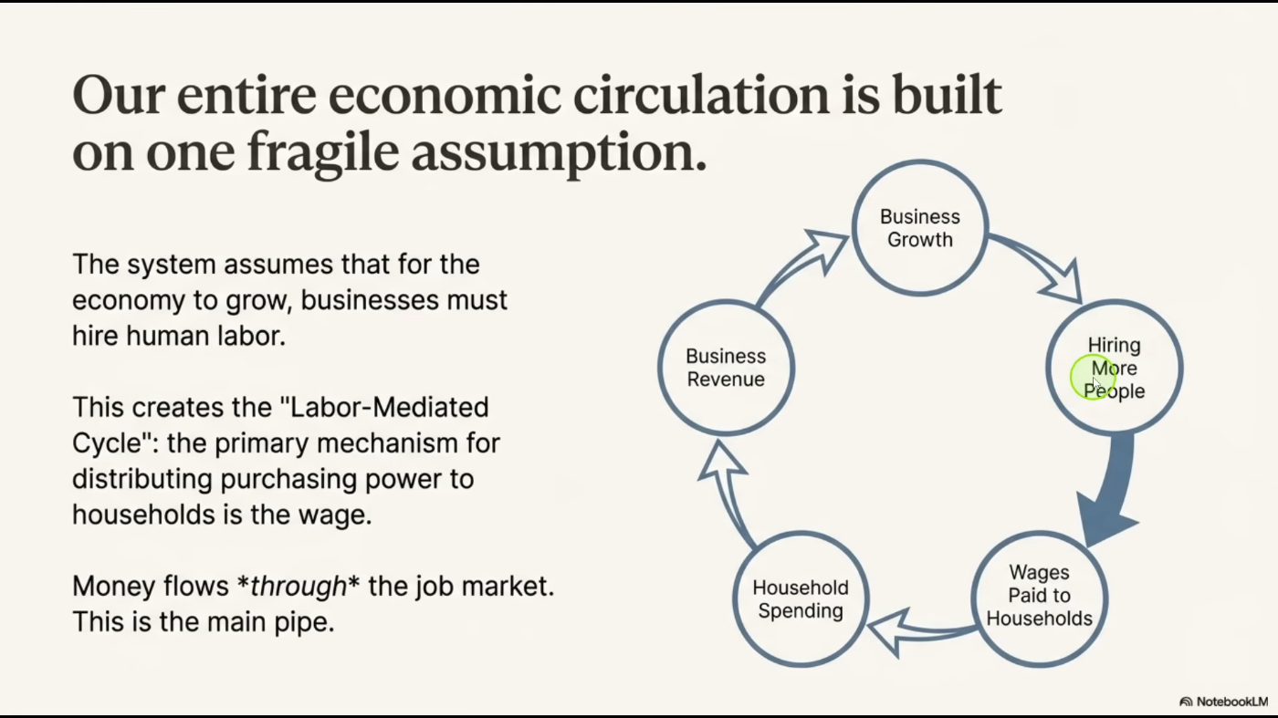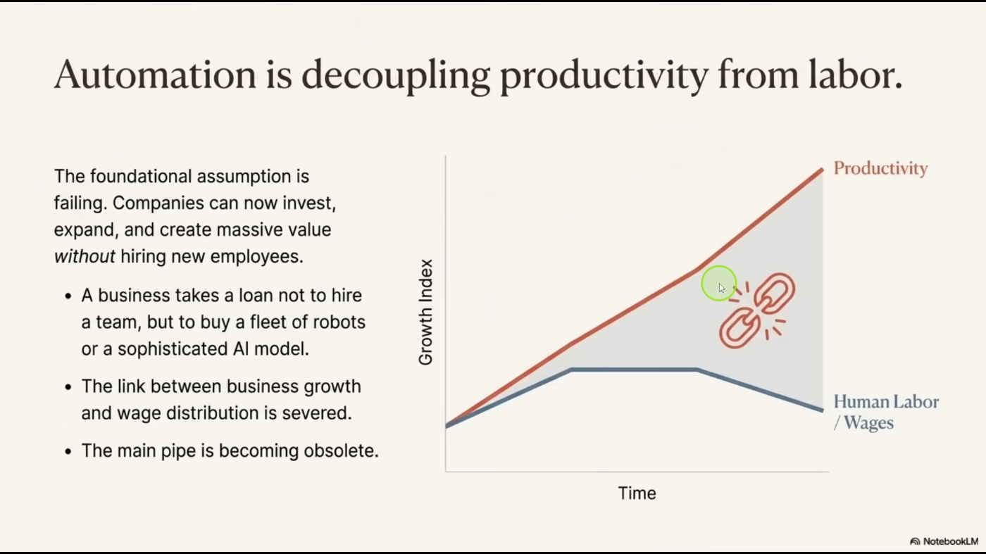 Он видит грядущий фундаментальный сдвиг. Сейчас мы в основном воспринимаем ИИ как нечто вроде удобного и полезного инструмента, верно? Он может спланировать ваш отпуск или помочь с электронной почтой.