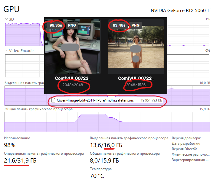 >32 ссаных гига ддр4, правда 4000mhz У меня DDR4 @ 3000 МГц; правда 128 Гбайт в Quad Channel. Сейчас посмотрю на следующем пике сколько займёт. А то тут глянул, а там 111 Гбайт RAM было забито (может, там Z-Image не выгрузилась ещё, помимо FLUX.2) и прифигел малость.