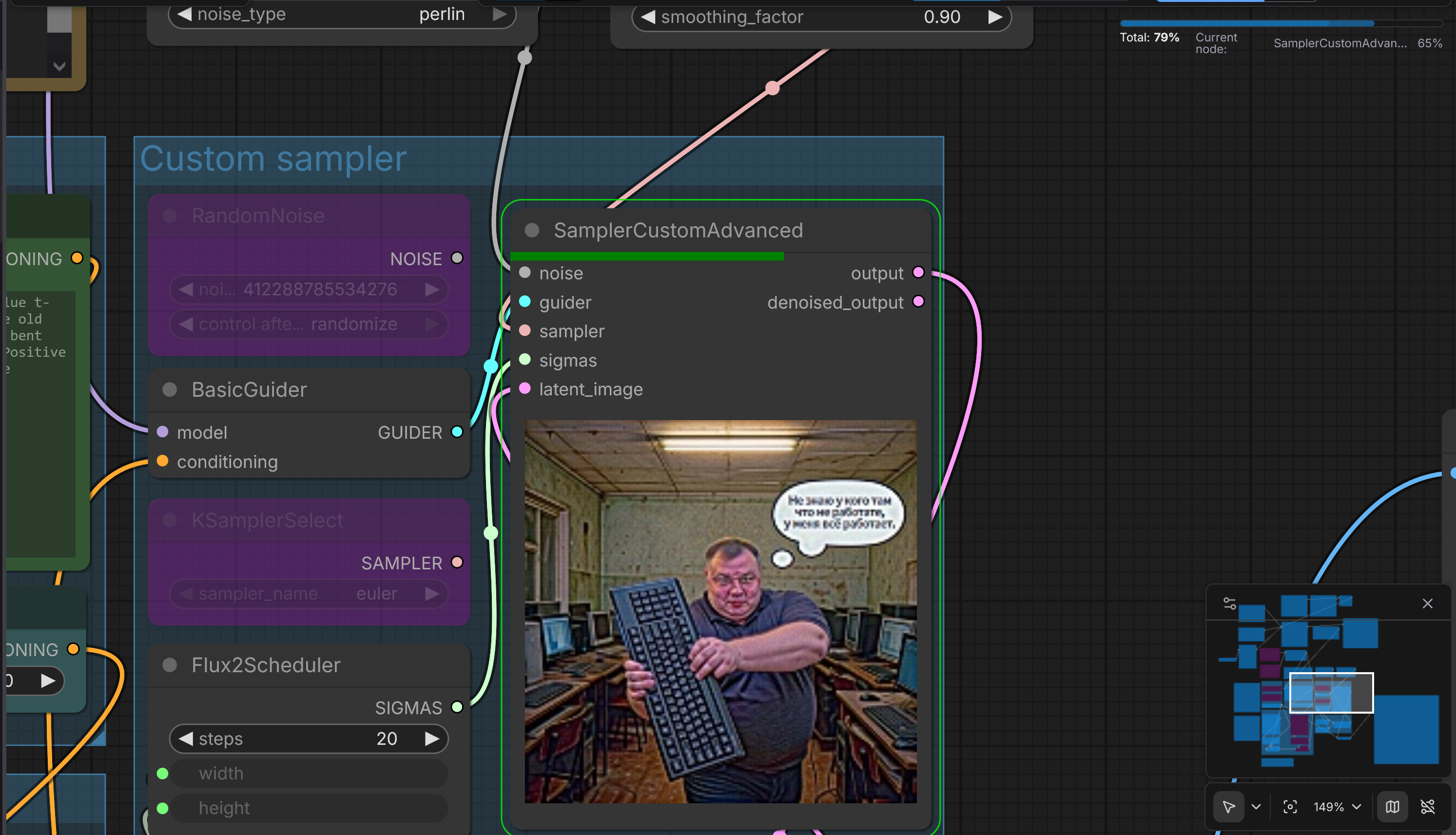 Если хочешь лучше результаты, куришь мануалы по ComfyUI, вникаешь, тратишь две недели на неспешное освоение базы генерации про всякие существующие модели, samplers/schedulers, разбираешь чужие типовые workflow. Потом более-менее осмысленно крутишь настройки узлов, понимая порядок их следования и соединения, лапша уже не кажется такой страшной.