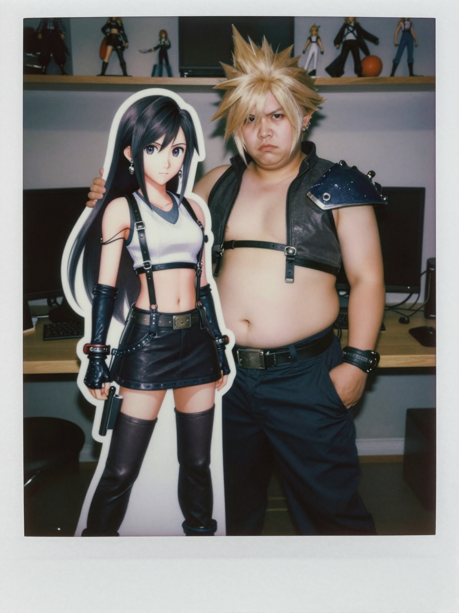 Вот это без JSON-promtа уже не сделать на FLUX.2 Поэтому, уточним детали. 1990-е это общая обстановка или стиль фотографии, как на «мыльницу» (FLUX.2 некоторые стили фотографий понимает)? Потом, сам персонаж должен быть остаться плоским в аниме-стилистике (как на пикриле в этом посте) или как на пикреле выше трансформироваться в подобие 3D?