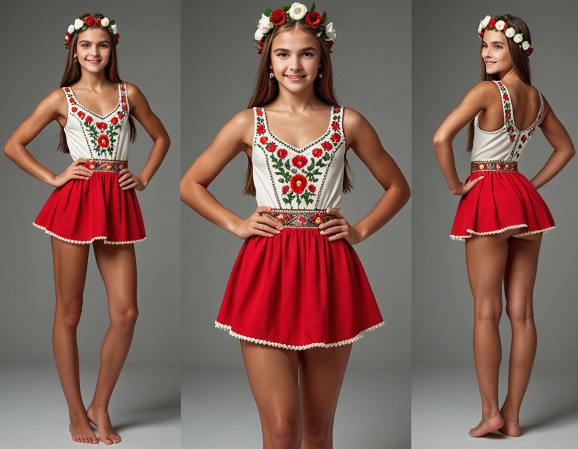 >>1471295 >tights-level THIGHS LEVEL А я скопипастил, смотрю нихуя не получается, потом вчитался и понял, что опечатка) Спасибо. Это сработало, очень помогает лора: thigh-gap. Сегодня в инсте случайно наткнулся на румынскую песенку и шишак в небеса улетел, уж очень я люблю всё это этническое. triple split screen, multy-view, back view, [full body], teen-girl (99 yo), hands on hips, romanian embroidered [thighs-level] dress, high waist, wide red waistband, edging hem, (huge floral) wreath on head, panties under dress