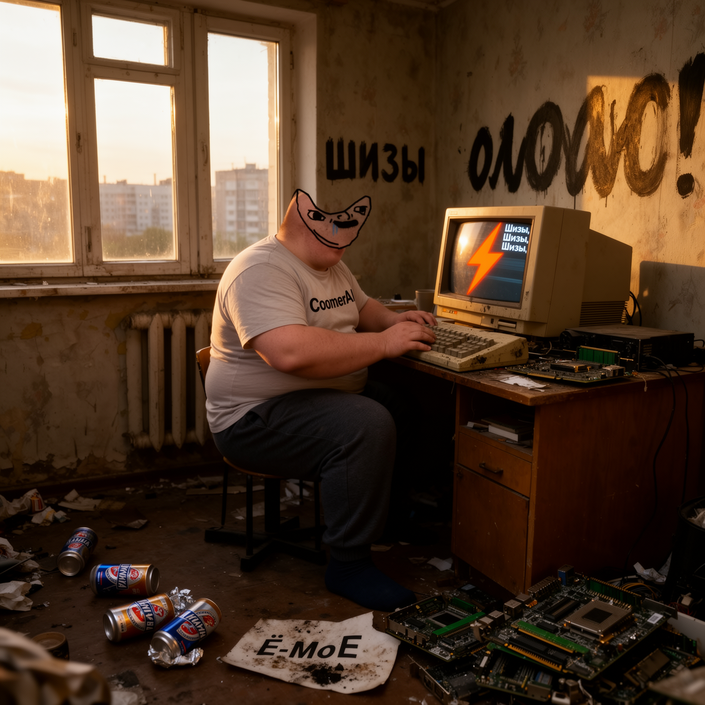 Это как? CRT-мониторы FLUX.2 умеет рисовать. А что за стаканы, я хз. Prompt я на английском ему пишу, если что.