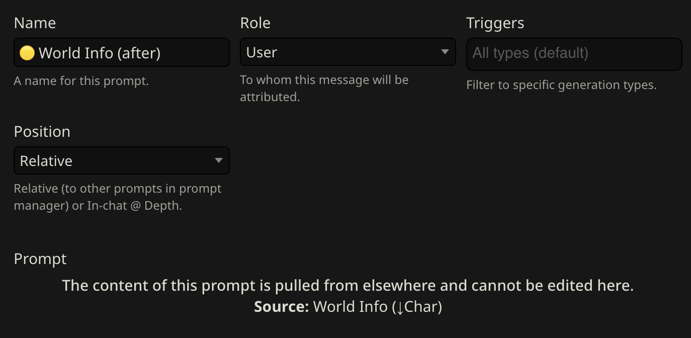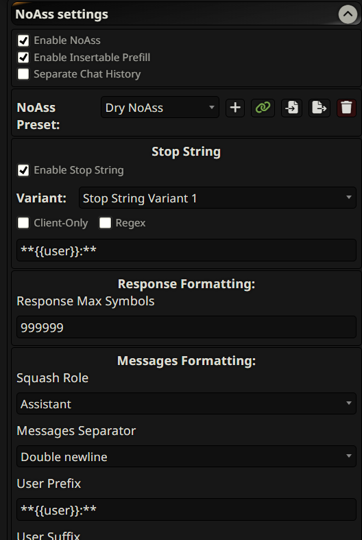 Поясните за Prompt Post-Processing в таверне, раньше же этой херни не было, и было нормально. А теперь, когда ставлю None, то сетка пишет как будто бы более кратко, но будто игнорирует какие-то инструкции выборочно и речь в какой-то момент начинает походить на ассистентскую, ставлю Single - начинает следовать всем инструкциям, ответ увеличивается в 2 раза, но форматирование проёбывается, плюс на некоторых сетках как будто двойные ответы (на манер нейросетей-генераторов изображений с двойным лицом), ставлю Strict - херня начинает писать за юзера, но будто бы следует инструкциям ещё строже. В доках об этом кратко слишком написанно, и непонятно, что считать за first message - это сам пресет, включая первое сообщение, или это только первое сообщение? Не знаю как у кого, но я привык строго начинать каждое рп в каждой карточки с сообщения от лица чара, а не от лица юзера.