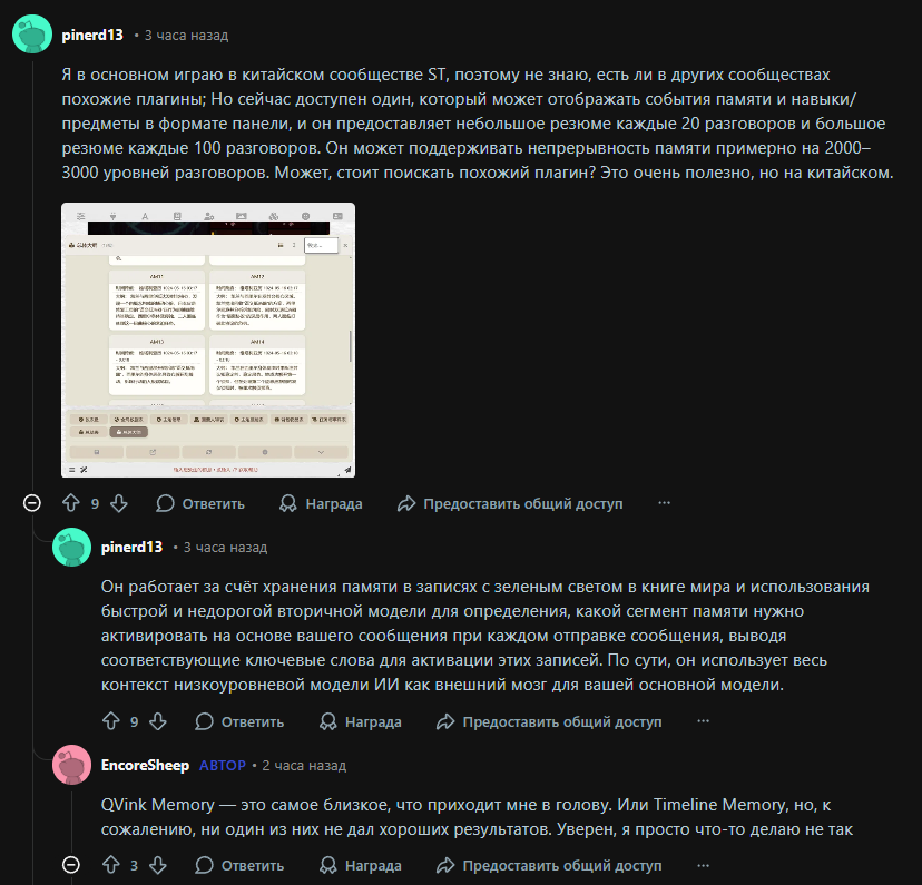 >>1472213 И как ты понимаёшь что у человека нет суммарайза за бортом? Примерно чувствуешь? >>1472228 >Просто вас послушать, так там должно быть какое-то мегарп, если (поток сознания) Это всё твои личные проекции, наманяфантазировал себе и хочешь от других не пойми чего. Всё для чего эти механики нужны это чтобы сетка не проёбывала инфу, либо отбить какие-то дурные привычки. Если б ты хоть один РП сообщений на 500 залепил, ты бы понял и такого не писал. Вот между такими анонами и идёт перекидывание пердолингом.