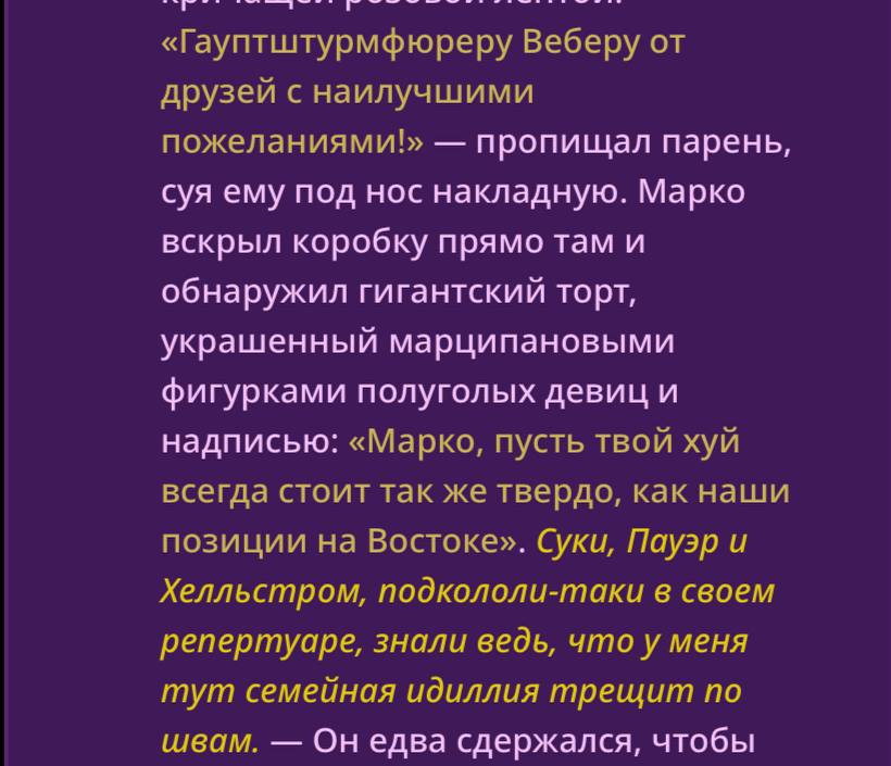 >>1472352 Да вот >>1470909 просто адекватная проза без выебонов, у меня на самом деле требования не такие большие. Но меня с реддиторско-миллениальной прозы современных сеток выворачивает, я хуй знает как можно этого не замечать, псайоп какой-то.