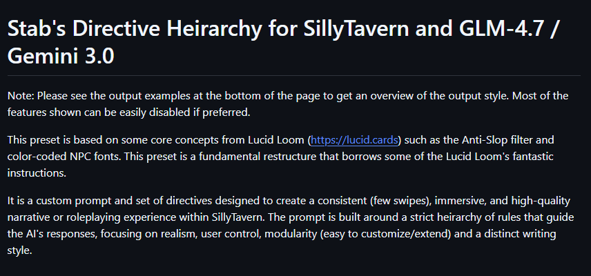 >>1470869 it/he/she неинтуитивно расставлены для англофона, наверно а вообще критикуют пресеты и карты только по их тексту, не попробовав, только дегенераты. Ну в разумных пределах конечно, очевидно что 22к промпты с шизой это бред. Промпты пишутся для нейронок, а не людей, главное насколько глубоко оно протестировано.