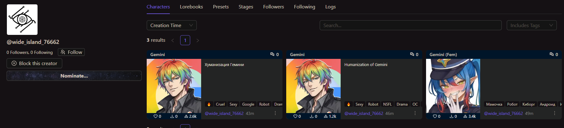 Че за бред. Почему блять каждый раз когда бот вводит нового нпс-мужика его зовут Лупа нахуй. Кручу температуру, меняю пресеты, все лорпуки отключены и везде один этот заЛупа (Модель гемини, прокси помидорки)