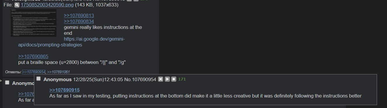 >>1470883 Никто не тестирует промпты вообще. Потыкать чет там на паре карточек - это не тестирование. Поэтому делать выводы по тому как промпт написан - это база, сами промптоделы просто наваливают хуйни про которую думают что она должна сработать.