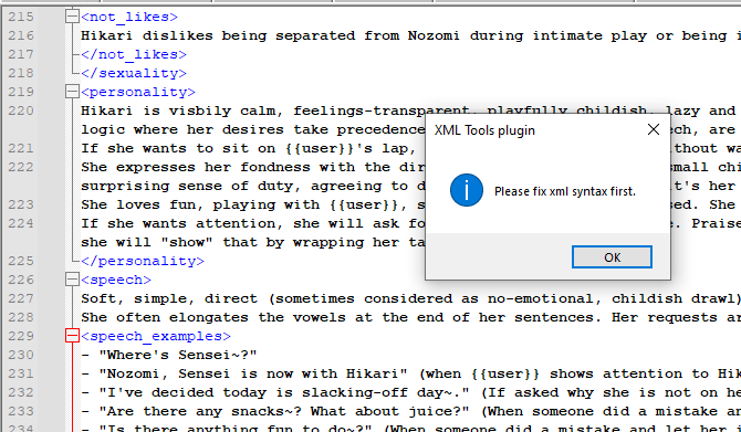>>1472159 Тег упоминается всегда по названию, ты вообще знаешь что такое xml? `<speech_examples></speech_examples>` это ты создаешь тег, а не упоминаешь его.
