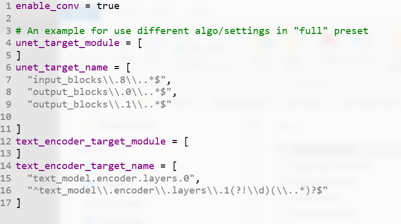 >>1483286 >>1483286 Да все просто. Готовишь датасет из говна и палок, указываешь его в датасете. Зетку можно тренить аж на 256 если врама нет, но а так начиная с 512 резолюшен в самый раз. Берешь дедистиллед модель в дифузерсах, указываешь адресом где находится на пека. Настройки тренинга в устрице позволяют тренить в квантах что существенно экономит врам, я выставлял 4 бита для трансформера и 2 бита для те, но локр тренится на квантах только начиная с 40 серии нвидии, лоре без разницы. Триггер ворд не обязательно если не нужен вызов целенаправленный. В конфиге можно прописать также transformer_only: false чтобы захватить контекст рефайнер слои, который убыстряют схождение. Ну и по мелочи можешь сделать адаптивный адафактор и покрутить его параметры прописав их в конфиге вручную.
