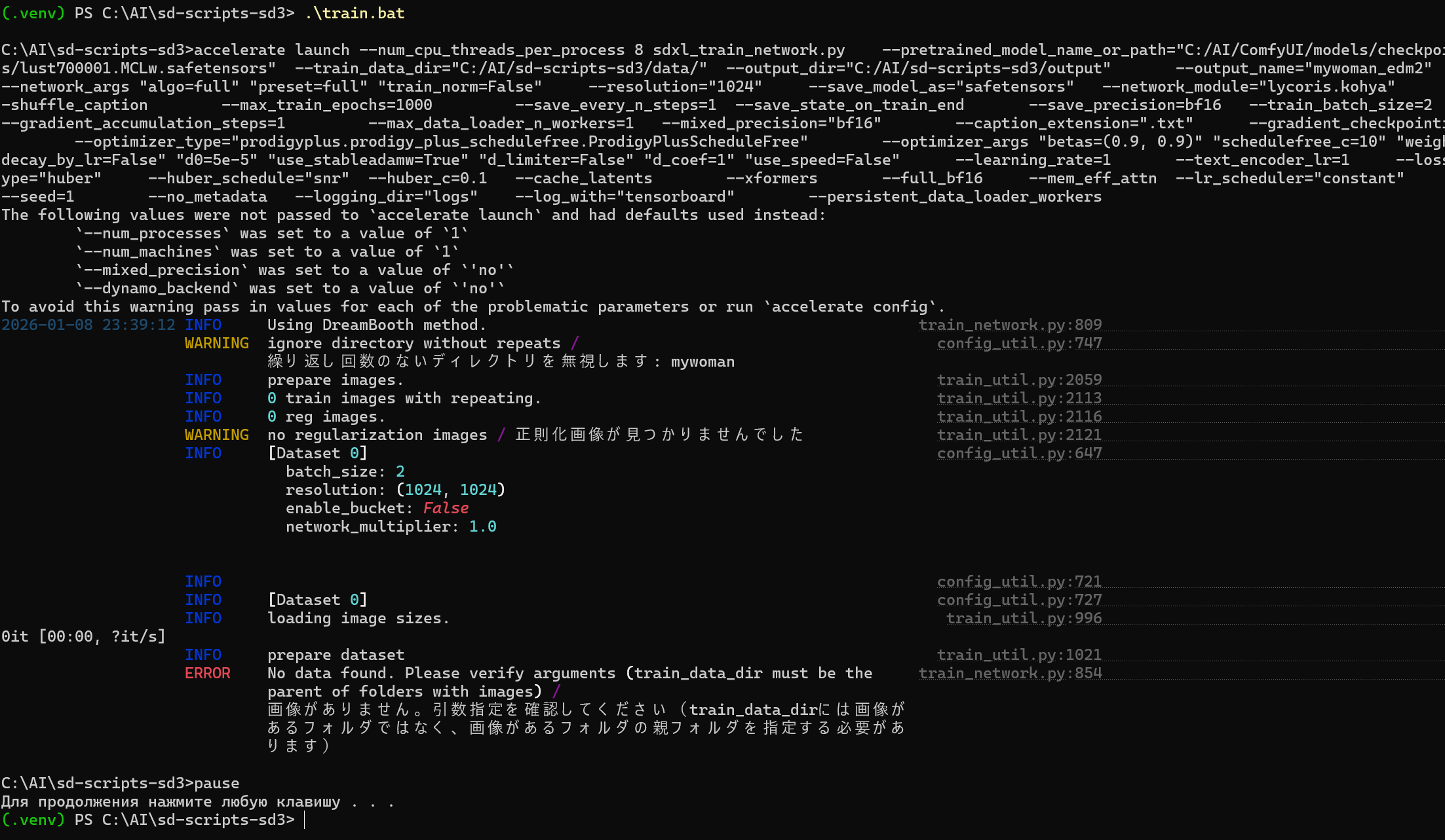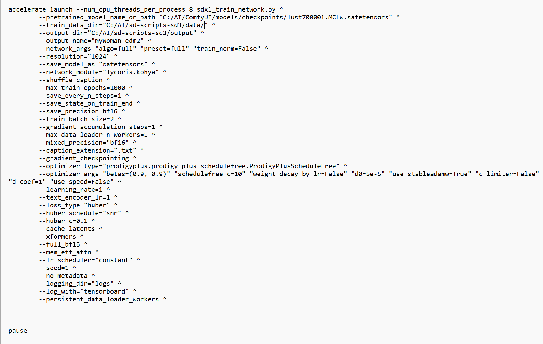 sdxl_train_network.py: error: unrecognized arguments: --network_model_as=safetensors constant --edm2_loss_weighting_num_generate_graph_limit=150 --edm2_loss_reduced_use_float64 Traceback (most recent call last): File "C:\Program Files\Python310\lib\runpy.py", line 196, in _run_module_as_main return _run_code(code, main_globals, None, File "C:\Program Files\Python310\lib\runpy.py", line 86, in _run_code exec(code, run_globals) File "C:\AI\sd-scripts-sd3\.venv\Scripts\accelerate.exe\__main__.py", line 7, in <module> File "C:\AI\sd-scripts-sd3\.venv\lib\site-packages\accelerate\commands\accelerate_cli.py", line 50, in main args.func(args) File "C:\AI\sd-scripts-sd3\.venv\lib\site-packages\accelerate\commands\launch.py", line 1281, in launch_command simple_launcher(args) File "C:\AI\sd-scripts-sd3\.venv\lib\site-packages\accelerate\commands\launch.py", line 869, in simple_launcher raise subprocess.CalledProcessError(returncode=process.returncode, cmd=cmd)