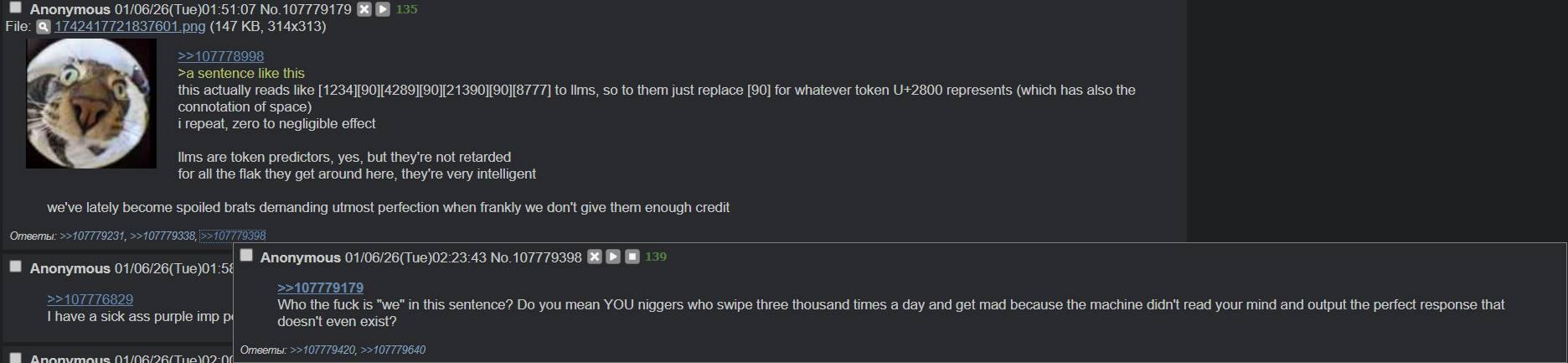 А я в свое время ниггеров пытался генерить первым сообщением. Очевидно ниче не выходило, зато через 5-7 сообщений с контекстом ниггеров бот резал на ура и продвигал арийскую расу. Почему я до этого дошел в 2023 году, а даунич выше как баран упёртый не понимает в чем проебался?