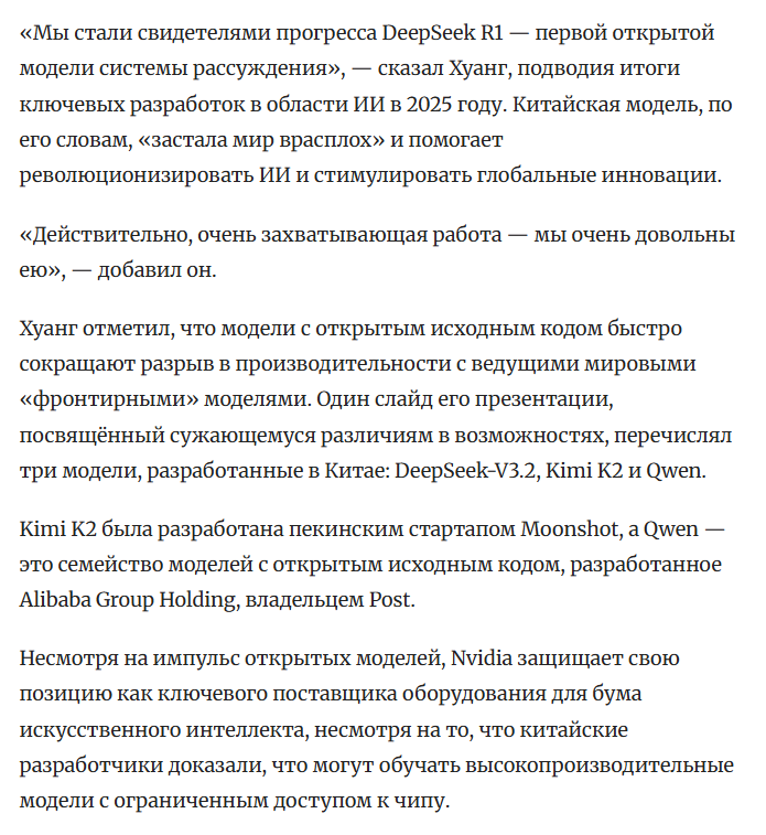>>1482210 >пару блеквел джипиу Пару тысяч, ты хотел сказать. Посттрена того же дипсика стоила 6млн, при том что они ужались ебать как, посттрена современных дипсиков стоит дороже. Это только финальный тренинг-ран конечно, без учёта генерации датасета, итераций, проб и ошибок, времени челиксов. И только ГПУ время, и это они у них собственные а не аренда.