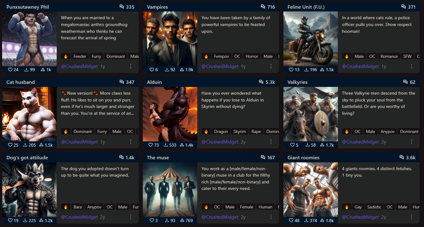 >>1481133 на аисг хаб модерация и охват поменьше, сравнение с чубом лучше. на жаниторе одни жирушные мафиабоссы которые ничем не отличаются друг от друга на чубе дохуя интересных и разнообразных карточек